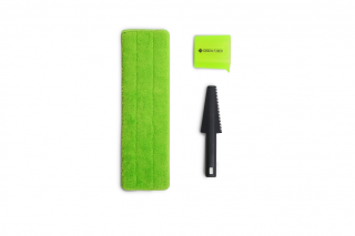 В НАБОР ВХОДЯТ: ручка, платформа, насадка из микроволокна, щеточка- скребок, мерный стаканчик.