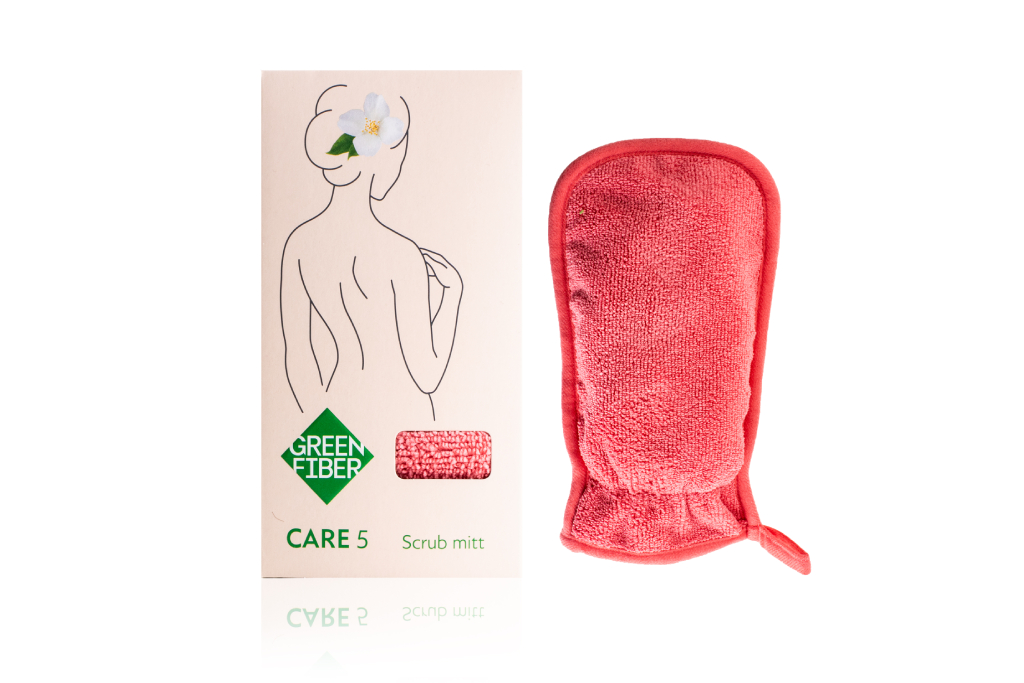 Green Fiber CARE 5, Варежка-скраб для душа, коралловая
